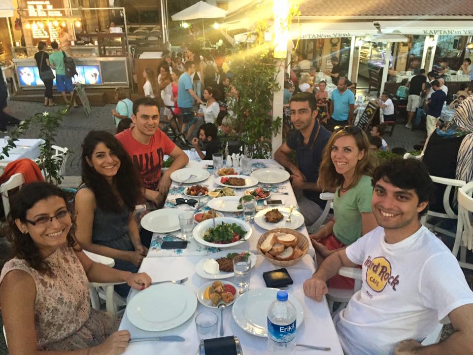 Nerdeyse unutuyordum. Yaz sonu ekibimizden Fulya’nın düğünü için ekibin yarısı olarak İzmir’e gittik. Düğün öncesi de Çeşme’de efsanevi bir tatil yaptık. Nasıl olur da şimdiye kadar burada yüzmemiş olurum diye kendimi ayıpladım. Aya yorgi koyu ne muhteşem bir denizdi öyle. Her sene senede birkaç kere gitme kararıyla ayrıldık. Aşağıdaki fotoda düğün öncesi güç topluyoruz. Alaçatı 😀