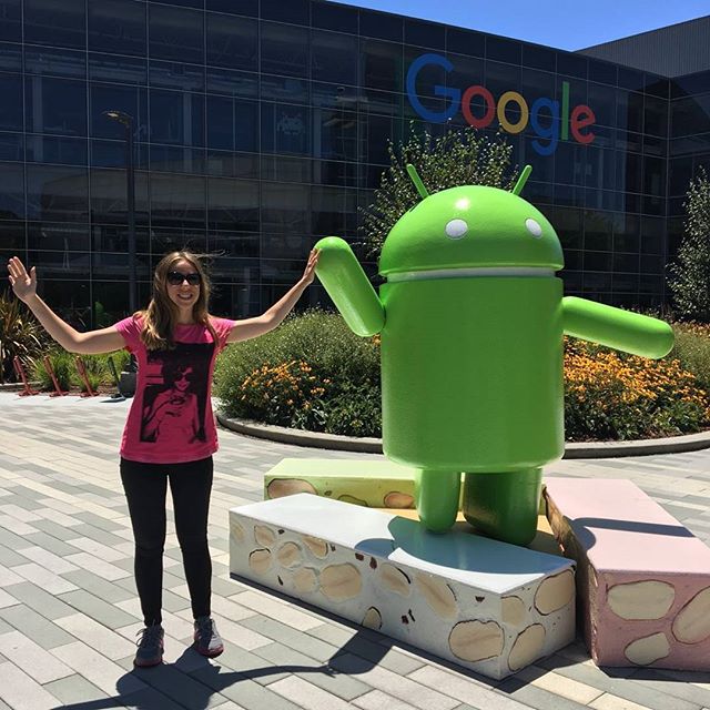 Aşağıdaki fotoğraf I/O’nun bir gün öncesi, MTV’de çekilmişti. Hem batchlerimizi almak hem de WTM yemeğine katılmak için gittiğimiz kampüsde bu tatlı droidi görünce fotoğraf çekilmeden edemedim.