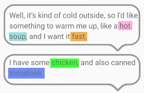 Google’ın conversation’ın nasıl çalıştığını anlattığı bir videosu var. Aslında bu video üzerinden ilerleyebiliriz. Videoda Google Home’u kullanan kişi “Let me talk to personal chef” diye Google Home’a sesleniyor. Bu noktada Personal Chef keyword’ü aslında action’ımız. Başlangıç için ilgili action’ın trigger edileceği bir anahtar kelimeye ihtiyacımız var. Kendi Google Home cihazımda denedim. Maalesef benim cihazım henüz, Personal Chef desteği veremiyormuş. Bu biraz üzdü tabi 🙂 Personal Chef de modunu, nasıl birşey istediğini soruyor. Kullanıcının verdiği yanıtın içerisinde bazı keyler aranıyor. Mesela sağdaki conversation’da da gördüğümüz gibi, bu action için hot soup, fast, chicken ve tomatoe kelimeleri anahtar kelimeler, bu noktada asistanı bunları içeren bir tarifi, bir web sitesi aracılığıyla kullanıcıya sunuyor.