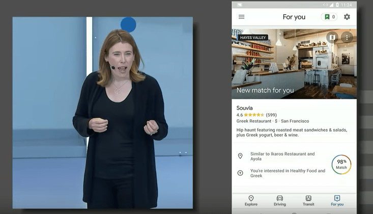 - Benim sevdiğim bir diğer özellik ise maps’e eklenen for you butonu. Benim bölgeme yeni bir mekan mı açıldı, ya da şu mekanı deneyebilirsin gibi önerilerle beni yeni mekanlara yönlendirecek. Burada ise Machine Learning gücüyle benim orayı sevip sevmeyeceğime bir match algoritmasıyla karar verecek. Açıkçası bu feature düzgün çalışırsa, telefonumdaki bütün mekanlarla ilgili uygulamaları silerim. Tabi bu durumda benzeri iş yapan app’lerin akıbeti ne olur bilinmez, kullanıcılar için herşeyi bir arada bulabilmek çok güzel bir şey.