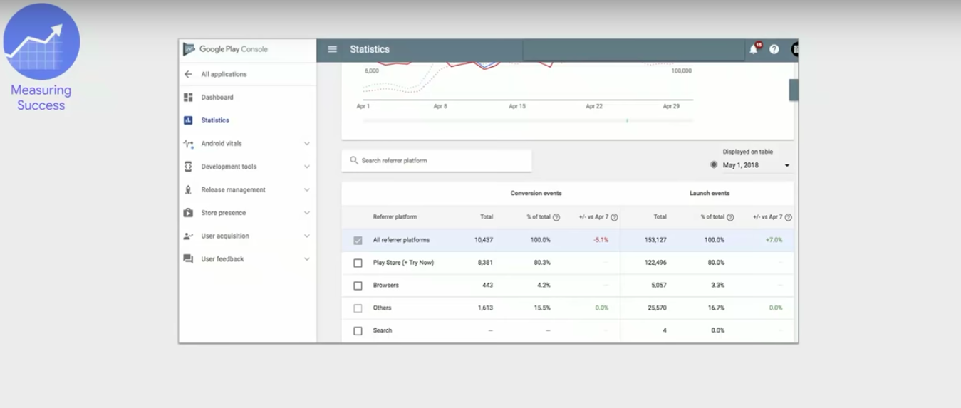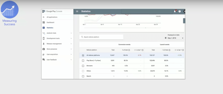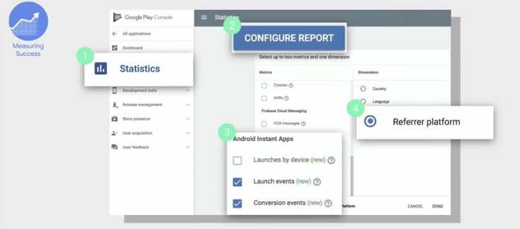 Google Play tarafındaysa yukarıdaki iki imajda gördüğünüz gibi Instant App’in başarı/sızlığını da ölçümleyebiliyoruz.