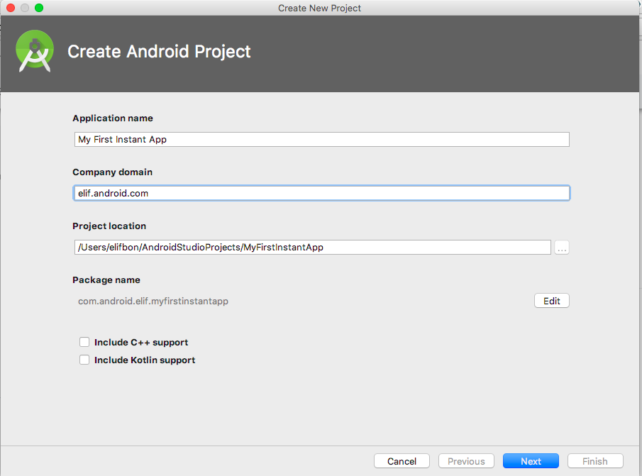 Target Android Device seçtiğimiz step’de include Android Instant Support tickini de seçmemiz gerekli.