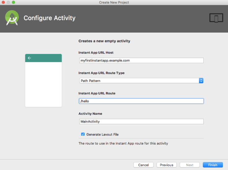 Instant app host bilgilerini girdiğimiz step’de ise ilgili host ve route url’lerinin girişini yapıyoruz.