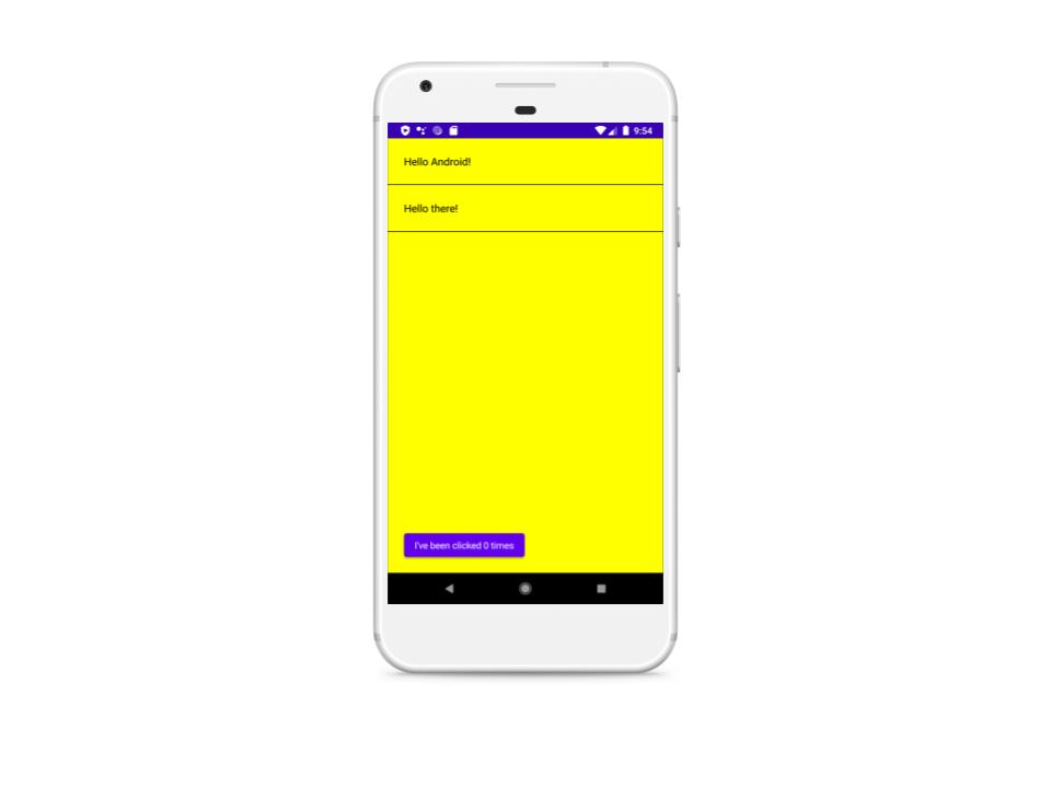 UI as function: Compose’la UI fonksiyon olarak tanımlanır ve bu fonksiyon datayı view hiyerarşisine dönüştürür. Aşağıdaki kod örneğine bakarsak, input basit bir data parçası, isim; output ise bir text widget’ı. İsmi güncellemek istediğimizde, fonksiyonu yeni datayla tekrar çağırmak yeterli olacak, ui hiyerarşisi yeni bir textle text widget içermiş olacak. Kodu inflate etmek ve update etmek için iki farklı kod bloğuna da artık ihtiyacımız olmayacağı için bu kodumuzu ciddi anlamda kısaltmış olacak. Eğer bu kodu uygun bir isimle mesela “world” le çağırırsak, çalıştırdığımızda ekranda “Hello world!” göreceğiz.