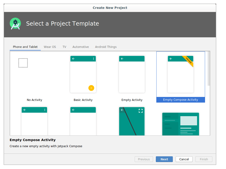 Let’s try now. By examining the Compose Basics codelab under Google Codelabs, you can have a basic knowledge of how Compose can be used. You should have Android Studio with min version 4.0 to experience Compose, latest Canary Preview to get the best experience. When you install this version, you will also see Compose under the project templates. You can simply create a hello world application from here. Also, examining the JetNews application written in compose in Google’s code samples can provide more detailed information about how to build a structure.